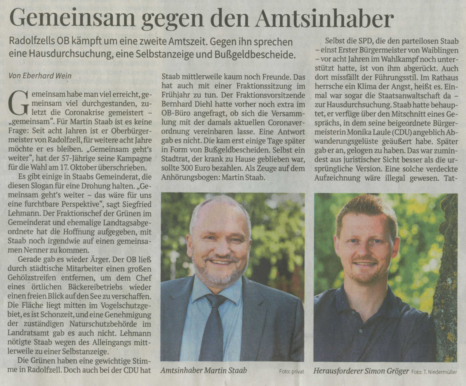 Das ist der erste Gegenkandidat für Amtsinhaber Martin Staab